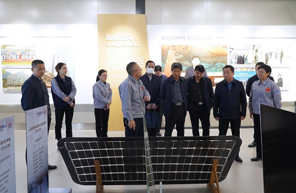 调研组一行先后参观了凯发k8体育APP光伏展馆、光伏碳中和绿色建筑、“水墨城市画卷”模型建筑以及光伏绿色建材示范产线等地,实地全面了解光伏产业发展、电力及新能源高端装备集群建设等相关情况,针对光伏建筑一体化、超低能耗建筑、光伏+智慧应用等前沿技术、产品进行沟通交流,并给予高度评价。
